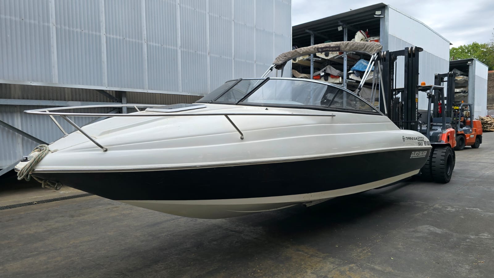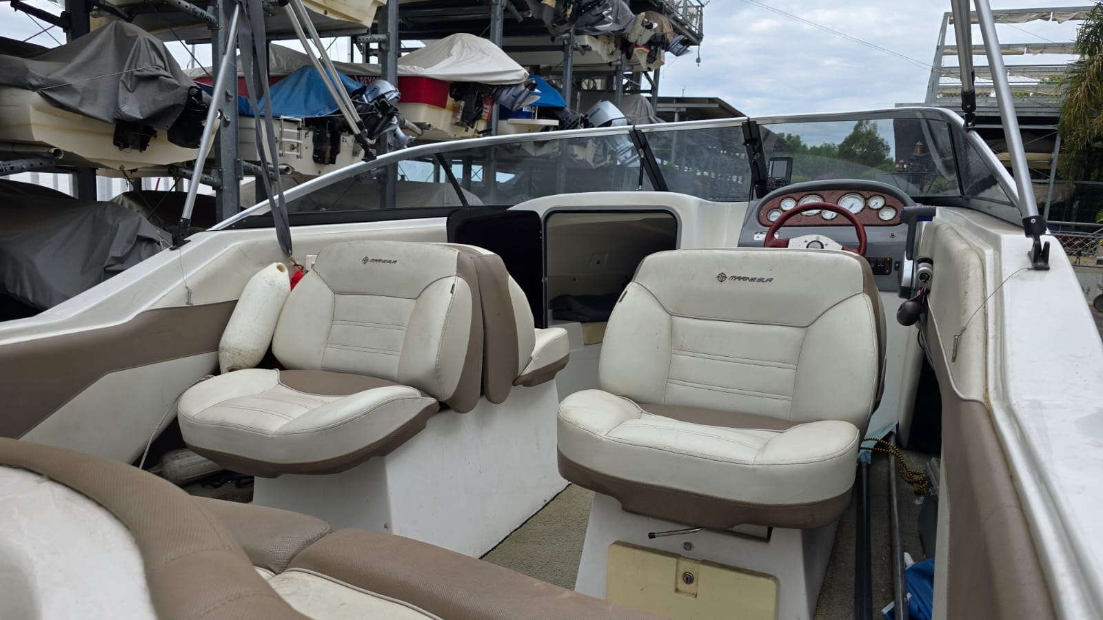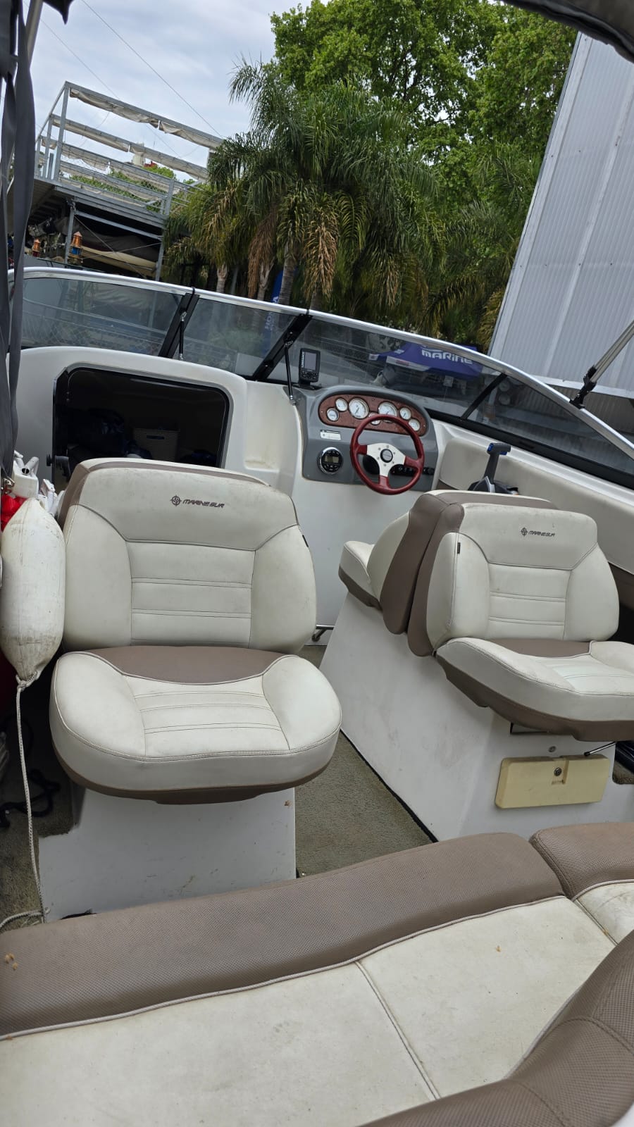 Lona, toldilla, escalera, ecosonda, baño, barra de ski, guarda ski, corta corrientes, alfombras desmontables.