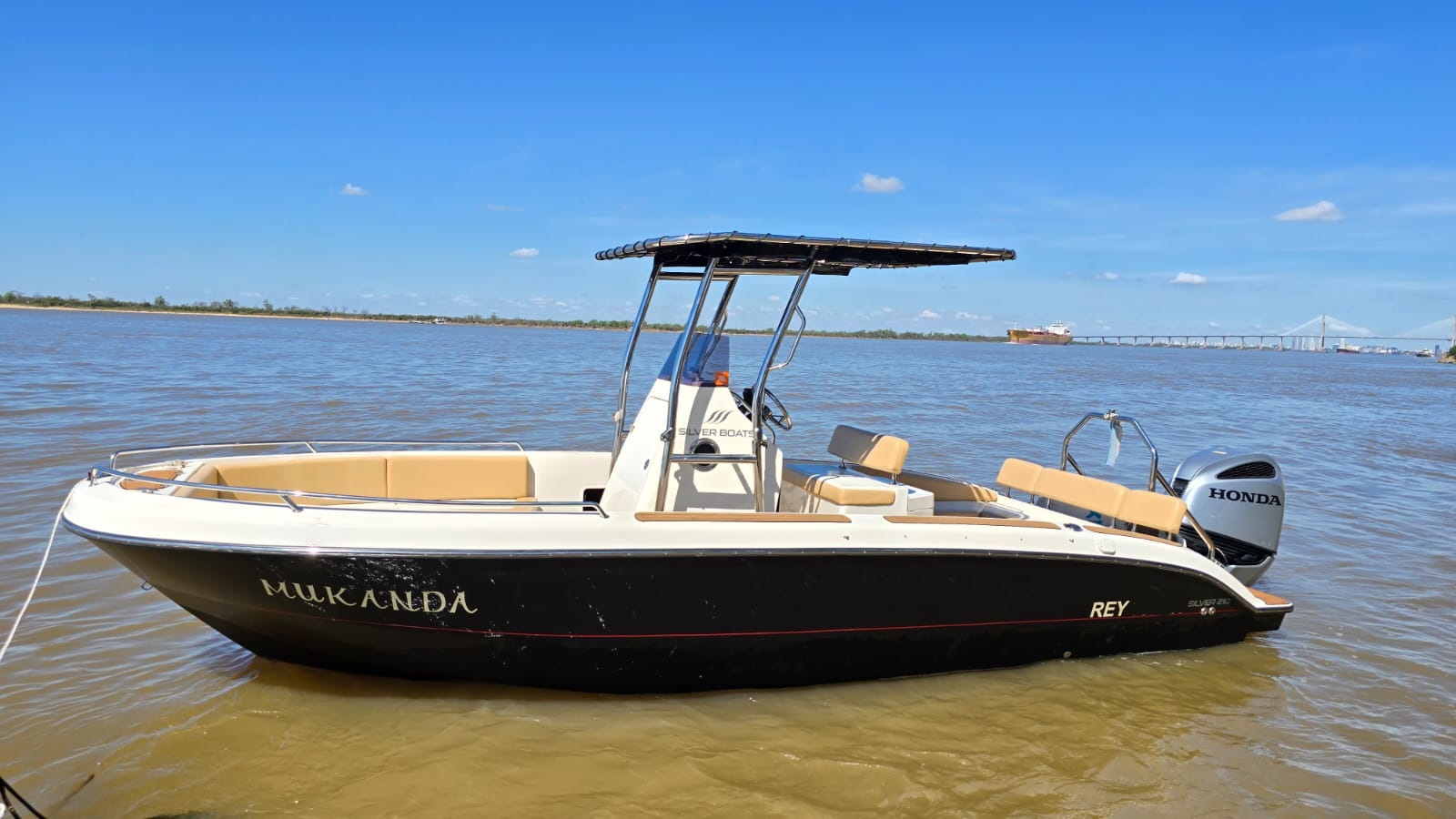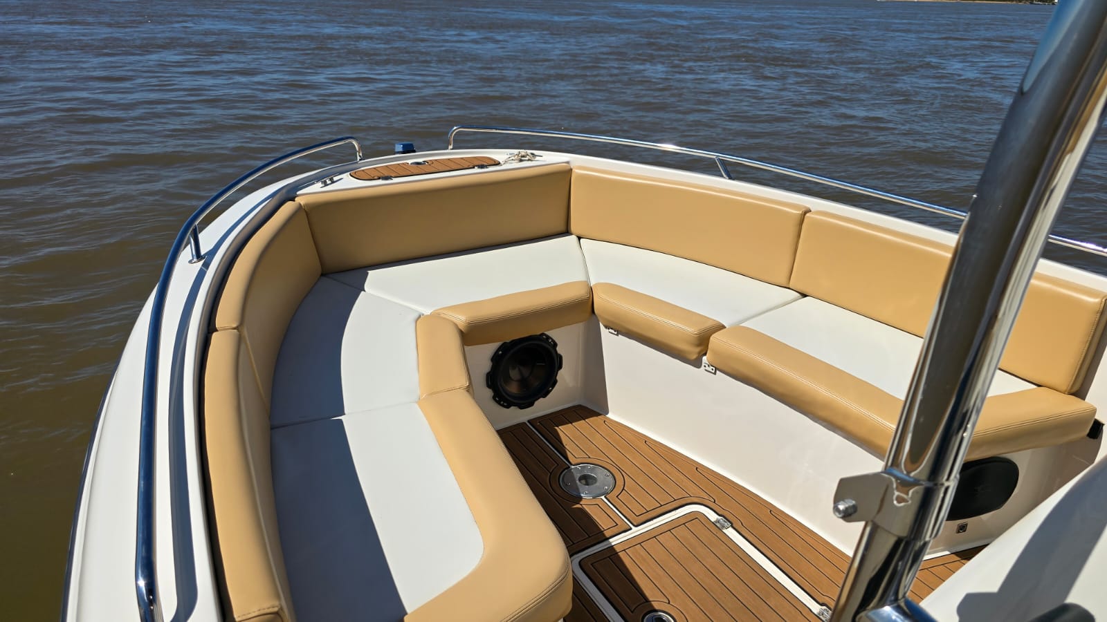 Lona, toldilla, audio, potencia, ecosonda, bomba de achique, escalera, barra de ski, baño inodoro eléctrico, duchador de popa, caja de ancla, piso deck, compás, timón de inoxidable, techo rebatible, mesa de quita y pon, bacha, tomas usb, posavasos de inoxidable.